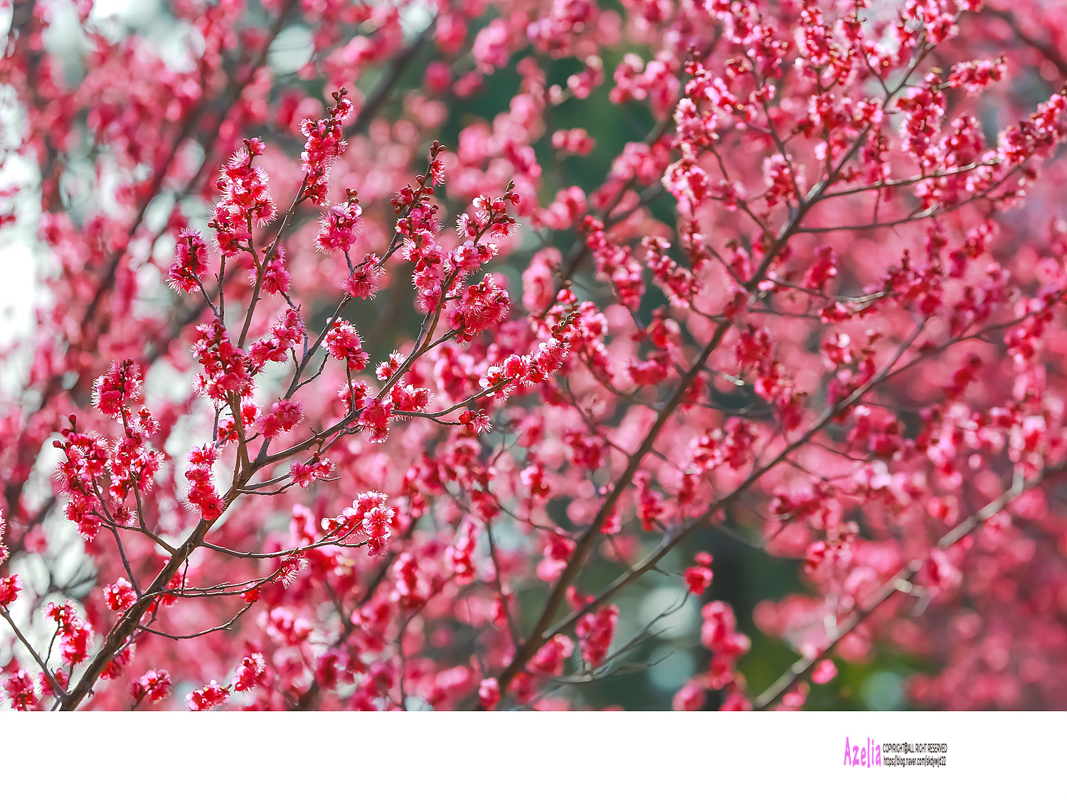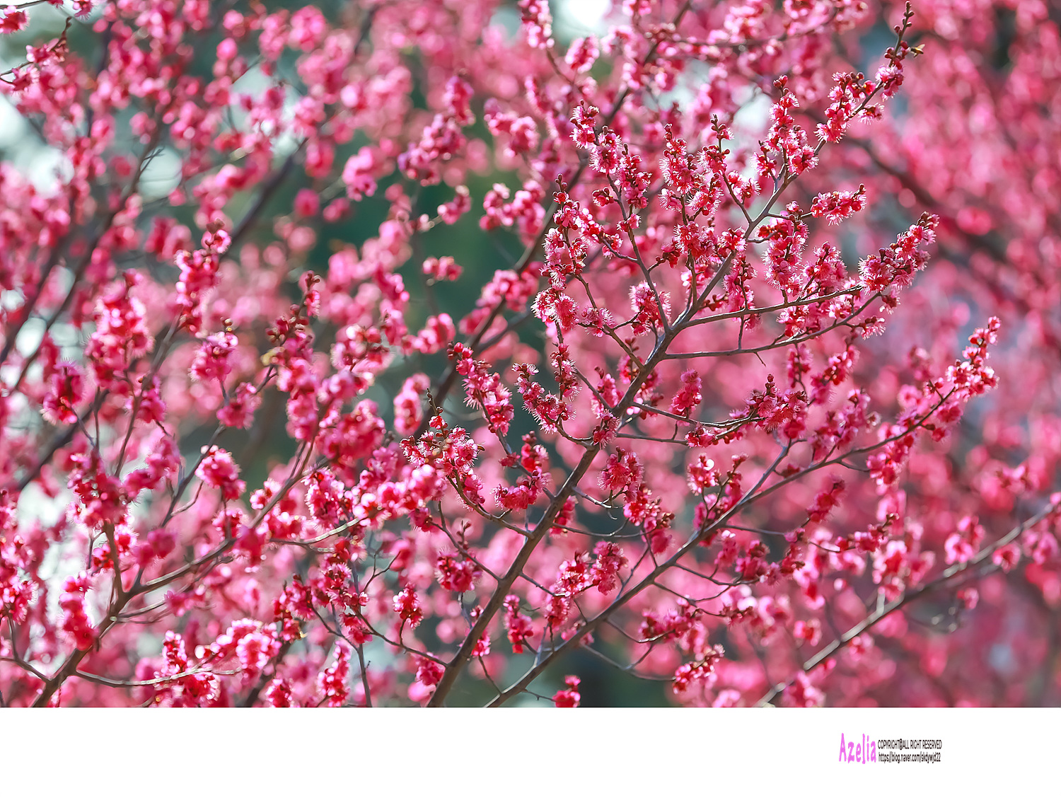 홍매화는 연한 분홍색 부터 진한 분홍색 까지 폭넓은 색을 지니고 있다